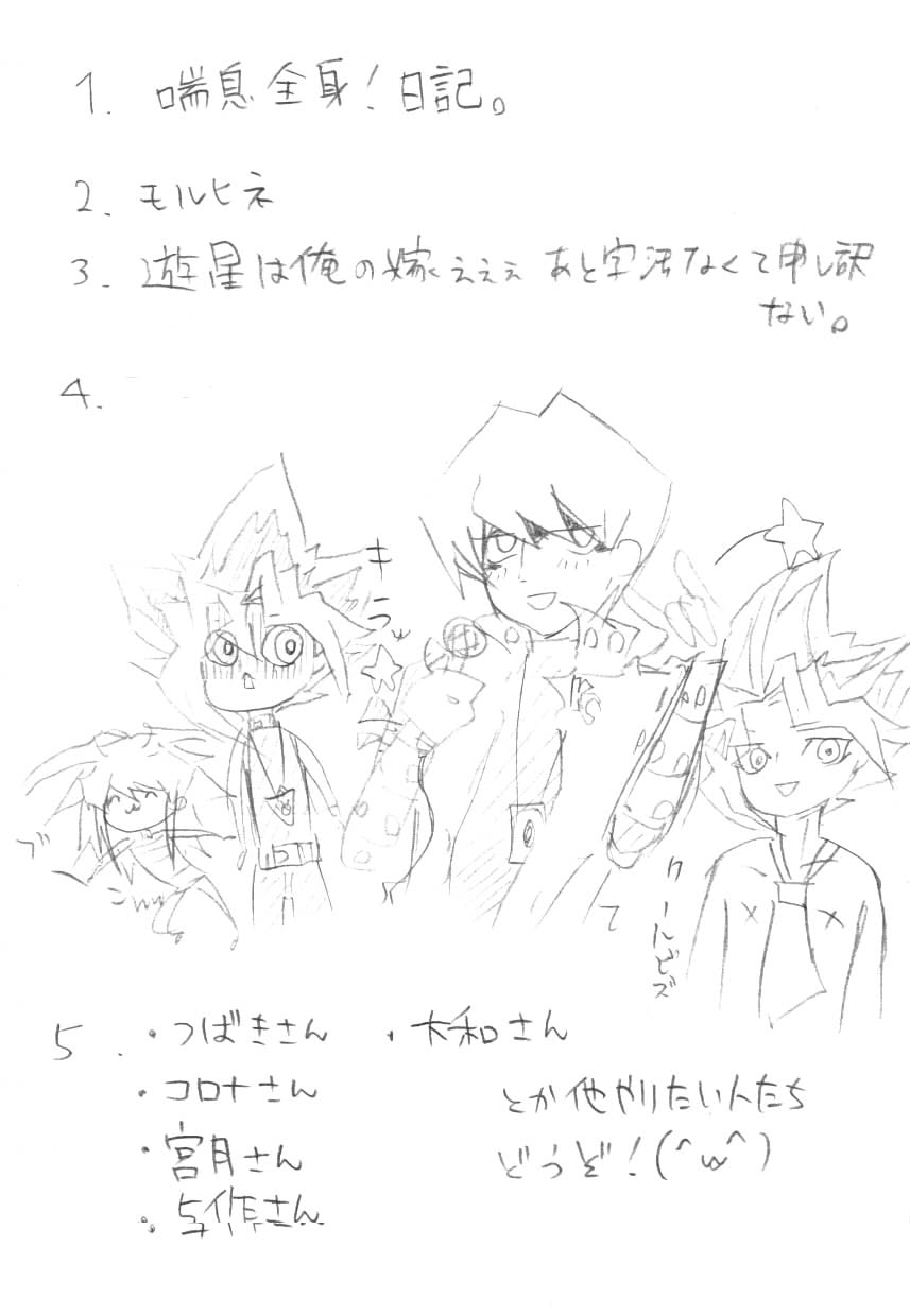 ○読書・ゲーム・落書き・友達と喋る 他にも色々。嫌いなことの方が少ないといいな!